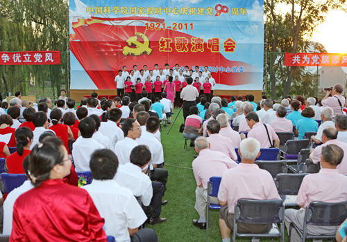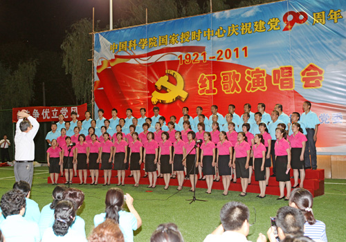 2011年6月23日下午,为庆祝建党90周年,国家授时中心在新建室外活动场隆重举行庆祝建党90周年红歌演唱会,中心党政领导和近400名干部职工参加了活动。