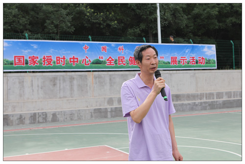 中心党委书记王玉林在“全民健身日”活动启动仪式上的讲话拉开了“第九套广播体操”展示的序幕。伴随着 “第九套广播体操现在开始”的音乐声,全体参加展示活动人员激昂振奋、朝气蓬勃、高喊口号、步调一致,彰显出国家授时中心职工健康快乐的精神面貌。