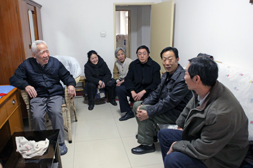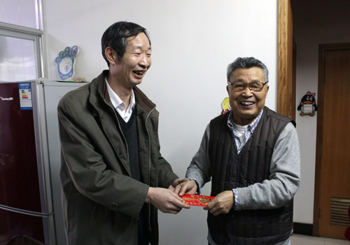 1月28日,中心党委书记王玉林代表中心党政领导班子,在工会副主席、人事教育处处长、党委办公室主任、离退办主管等陪同下,走访慰问了中心离休老干部、老领导、老干部遗属。每到一家,王玉林都仔细询问老同志的生活情况和健康状况,感谢他们当年为国家授时中心发展所做出重要贡献,感谢他们对中心的发展的关心和支持。并为老同志送上节日慰问品、慰问金,祝愿他们身体健康、合家欢乐,过一个祥和、快乐的春节。