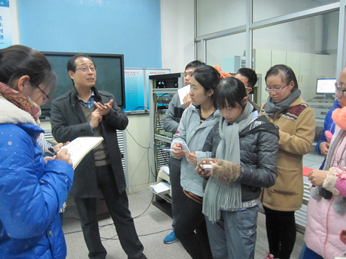 时间频率基准室袁海波博士为同学们介绍了时间频率科学知识。同学们饶有兴趣地参观了国家授时中心时频基准实验室,了解了国家标准时间的产生过程、是如何保持并与国际标准时间进行比对,以及如何发播给用户等过程。