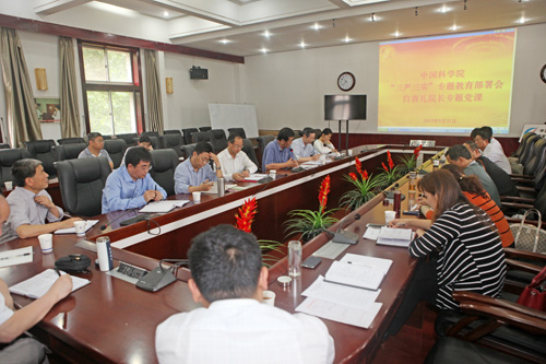 视频会议中,中科院党组书记、院长白春礼作了题为“自觉践行‘三严三实’,努力实现‘四个率先’”的专题党课。从三个方面阐述了“三严三实”的本质内涵和重要意义,深入分析了“不严不实”的具体表现和严重危害,并代表院党组就开展“三严三实”专题教育进行了动员和部署。院党组成员、副秘书长何岩对各单位开展“三严三实”专题教育提出了具体要求。