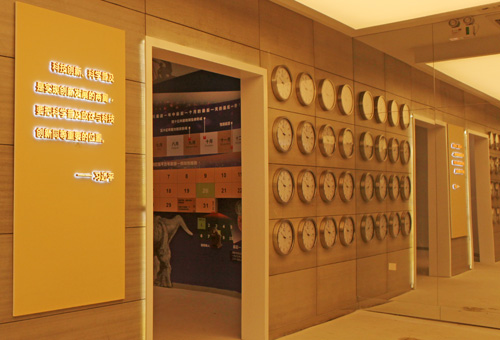 授时中心发展史部分主要展示了国家授时中心作为我国唯一、专业和全面从事时间频率研究的科研机构的发展历程、现状和未来规划。对授时中心历史进行了系统、完整的梳理和整理,并以图、文、物等形式进行展览展示。展品中既有时任国务院总理周恩来对短波台试播批示的珍贵文件,也有我国各个历史时期的守时钟,既有授时中心自行研制的各类时统设备,也有从世界各地寄来的无线电收听卡。珍贵的照片和实物全面展示了从1966年陕西省蒲城县短波台建设至今天国家授时中心的跨越发展历程,不仅反映出国家授时中心五十年风雨兼程、创新跨越的发展史,而且能够让广大观众了解新中国时频科技事业发展的脉络。