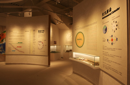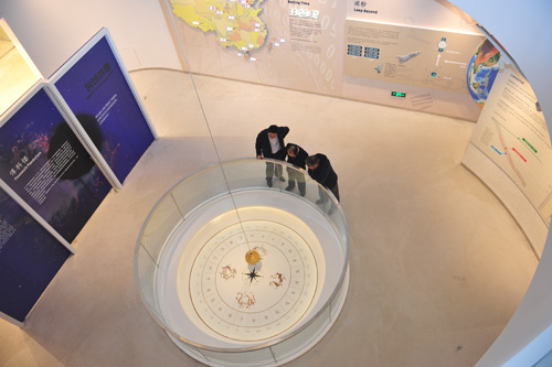 展馆进门处,习近平总书记“科技创新、科学普及是实现创新发展的两翼,要把科学普及放在与科技创新同等重要的位置。”十分醒目。一楼主要是时间科学展厅,既有实时校时的电波钟表墙,也有摆长12米、摆锤重量120公斤的傅科摆,既有按古法仿制的我国古代天文计时仪器的巅峰之作——水运仪像台,也有全面展示当今世界上包括GPS、GLONASS、伽利略、北斗卫星导航系统、中国区域卫星导航系统(CAPS)的360°全息投影。为达到良好的科普效果,国家授时中心按照“贴近实际、贴近公众、贴近生活”的要求,设计了触摸时间、时间戳认证、高精度定位等互动环节。