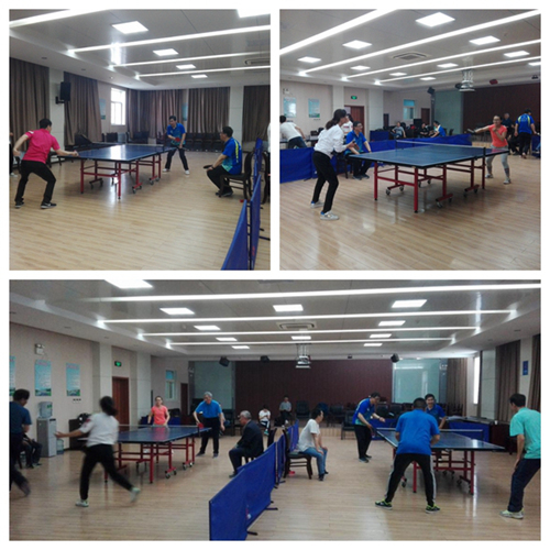 本次比赛共有来自临潼本部与授时部的18名职工参赛,参赛选手被分为临潼本部和授时部两队,采取9场5胜制,单场3局2胜,以男单、女单、男双、混双四种形式进行。比赛中,李志刚、雷新民两位老师应邀来到现场为双方进行技术指导,参赛职工们纷纷拿出自己的“看家本领”,推挡、搓球、对攻、拉弧旋等各种手法层出不穷,在比赛的同时也增进了彼此间的沟通与交流,最终临潼本部代表队以5:4取得胜利,整个比赛在欢乐和谐的气氛中圆满结束。