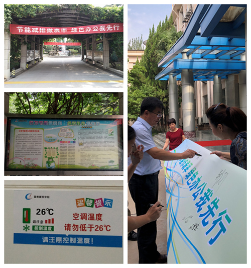 本次活动旨在进一步强化广大干部职工的节能意识和行为习惯,以推进行为节能、绿色办公的常态化、长效化。为保证活动的扎实开展,国家授时中心成立了由党委书记挂帅,后勤物业中心具体负责的节能办公工作小组。同时为浓厚活动氛围,工作组在研究所醒目位置悬挂宣传展板和倡议横幅,并张贴节能宣传标语30余条,在各办公室张贴节电、节水提示卡200余张。
