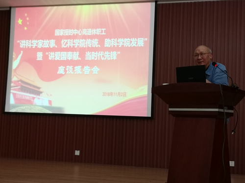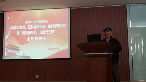 在下午的“讲科学家故事、忆科学院传统、助科学院发展”主题座谈报告会上,本部离退休老同志与授时部30名老党员共同聆听了原陕西天文台台长漆贯荣讲述的陕西天文台从选址、建设到发播运行的历史,以及原短波台主任尹德龙讲述的短波台的建设及发展历程。大家在两位老领导的讲述下,共同回顾“326工程”建设初期艰苦奋斗的岁月。