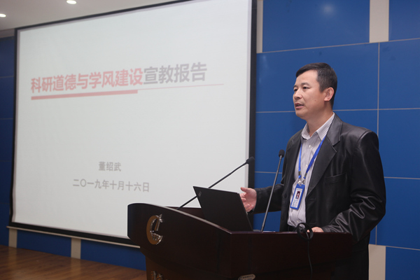 为弘扬科学家精神、倡导科研诚信,积极推动和促进科研道德和学风建设,营造良好的科研学术环境,2019年10月16日上午,中国科学院国家授时中心举办“科研道德与学风建设”主题宣教报告会。报告会由科技处、纪检监察审计室、教育处联合举办,并邀请中心纪委委员、科研道德委员会委员董绍武研究员做专题报告。中心党委书记窦忠与160余位新入职职工、新入所研究生、在职职工参加报告会。报告会由党委办公室主任曹玉玻主持。
